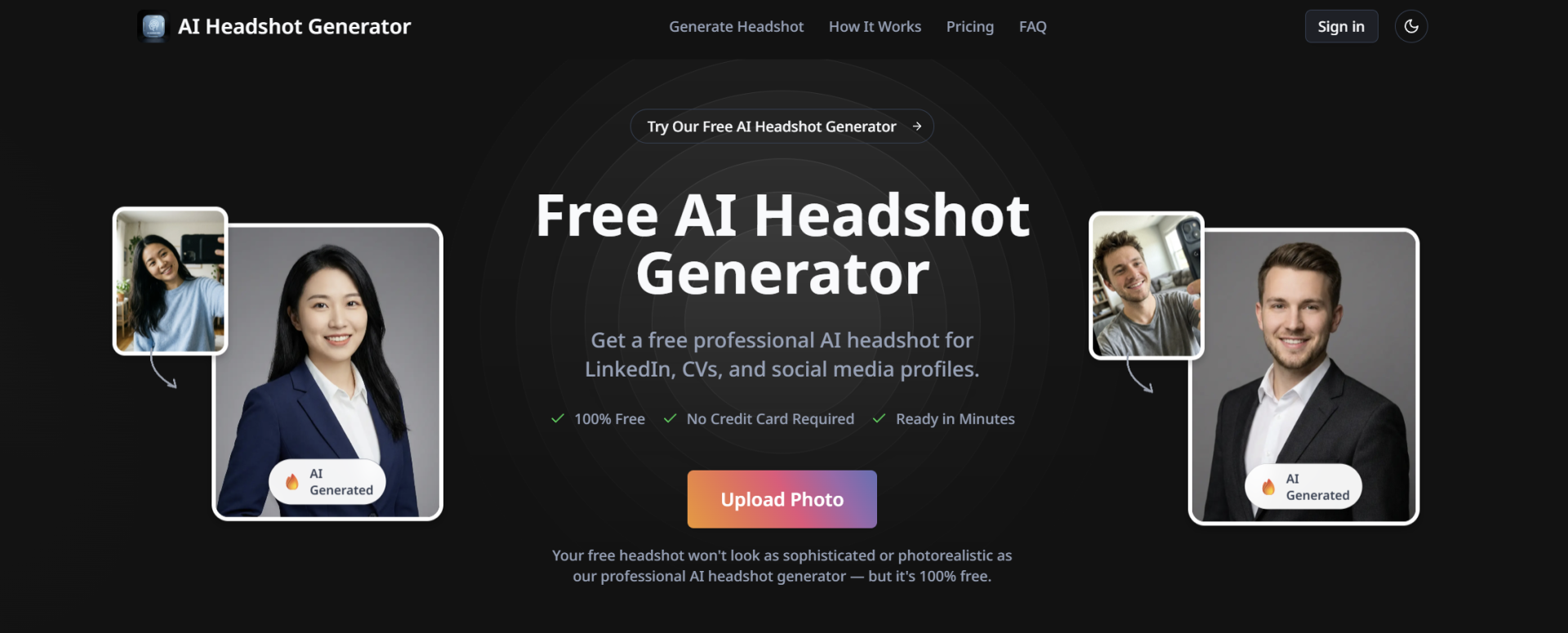 AI Headshot Generator creates studio‑quality business headshots from a few everyday photos, helping professionals and teams look polished online in minutes