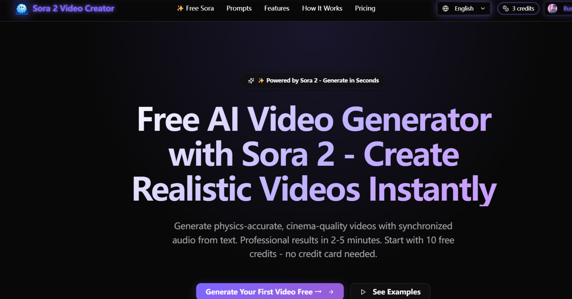 Create realistic AI videos with synchronized audio instantly. Physics-accurate motion, cinematic quality. 10 free credits, no credit card needed. Try Sora 2 now!