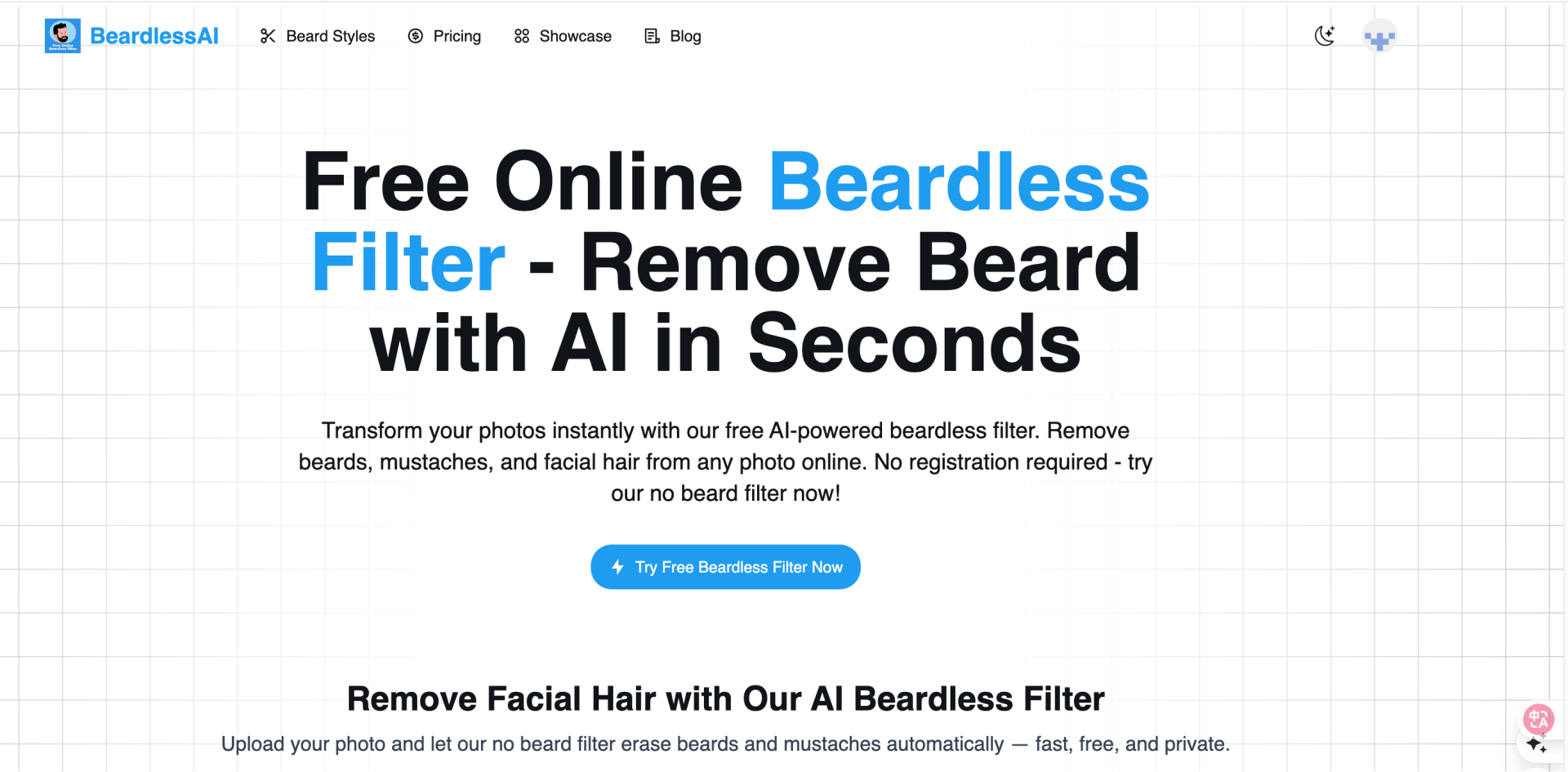 BeardlessFilter.com is an AI-powered online tool that instantly removes beards from photos. Simply upload your picture and get a clean, beard-free look in seconds. Perfect for creating professional, clean-shaven photos or just for fun. Try the best no beard filter online — 100% automatic, fast, and easy to use.