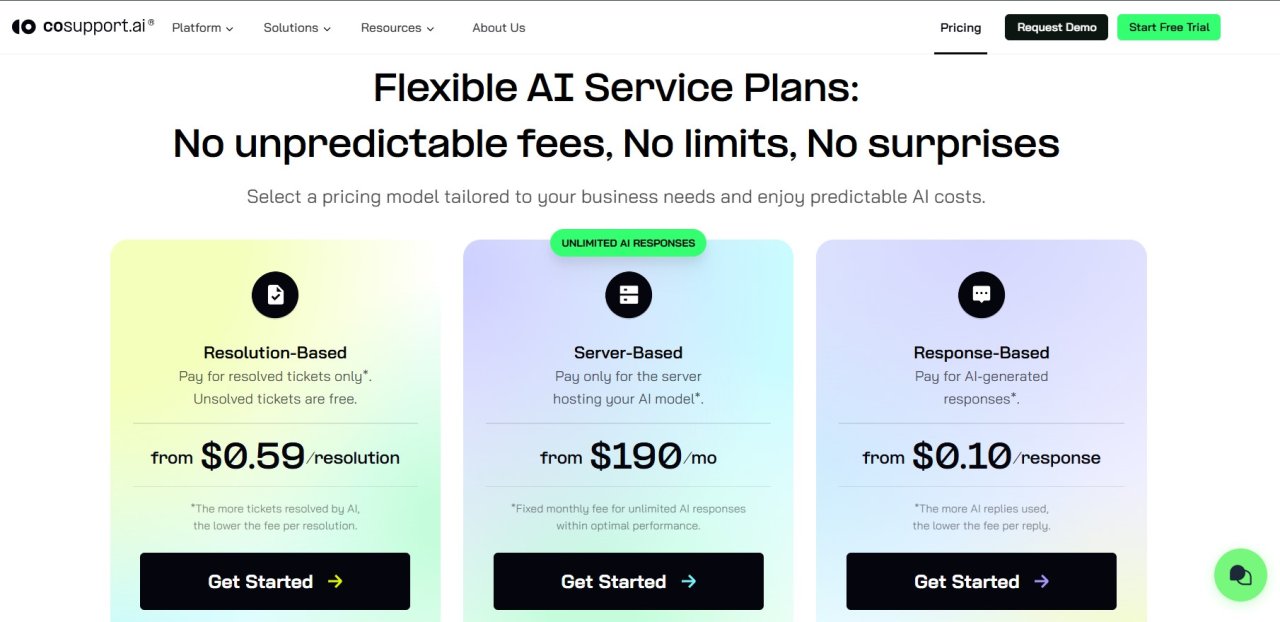 • Resolution-Based — pay only when the AI solves a ticket end-to-end