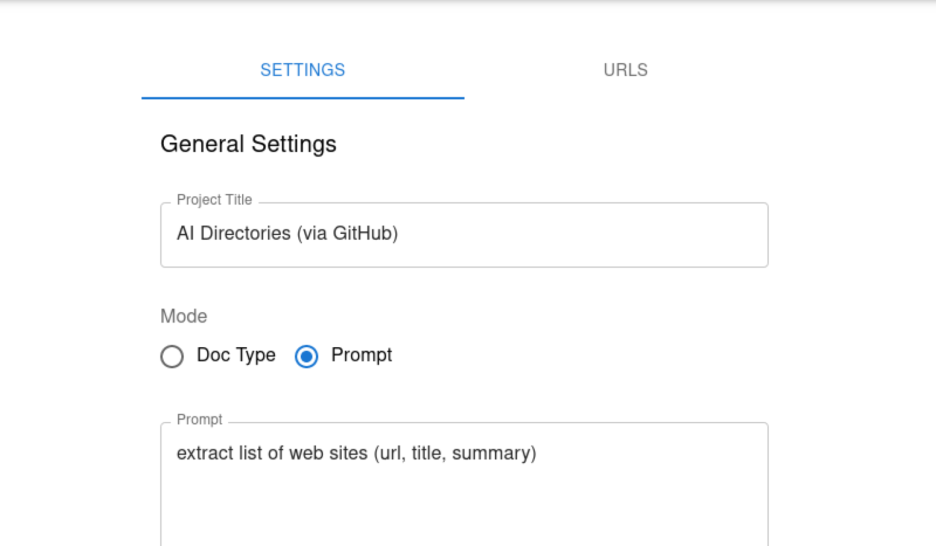 Datavist can figure out what to extract (eg. Book, Job Listing, etc.). All you need to do is provide a url. But you also have the option of writing your own prompts.