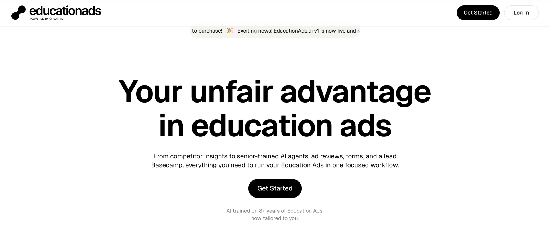 - Education Ad Agents: work with AI agents trained on 8+ years experience and $10M+ ad spent from real education brands.