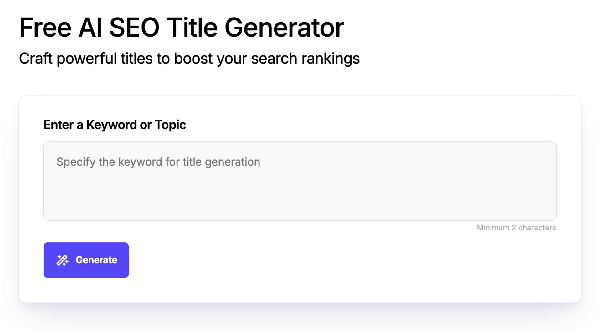 Mailmodo’s SEO Title Generator helps you create compelling, search-optimized titles that improve visibility and attract more clicks from search results. Simply enter your target keyword or topic and the tool instantly generates multiple headline ideas designed to align with SEO best practices. It removes the guesswork from writing titles, saves time during content creation and helps ensure your headlines are clear, relevant and engaging. Ideal for marketers, bloggers and content teams who want better rankings and higher click-through rates without manual effort.