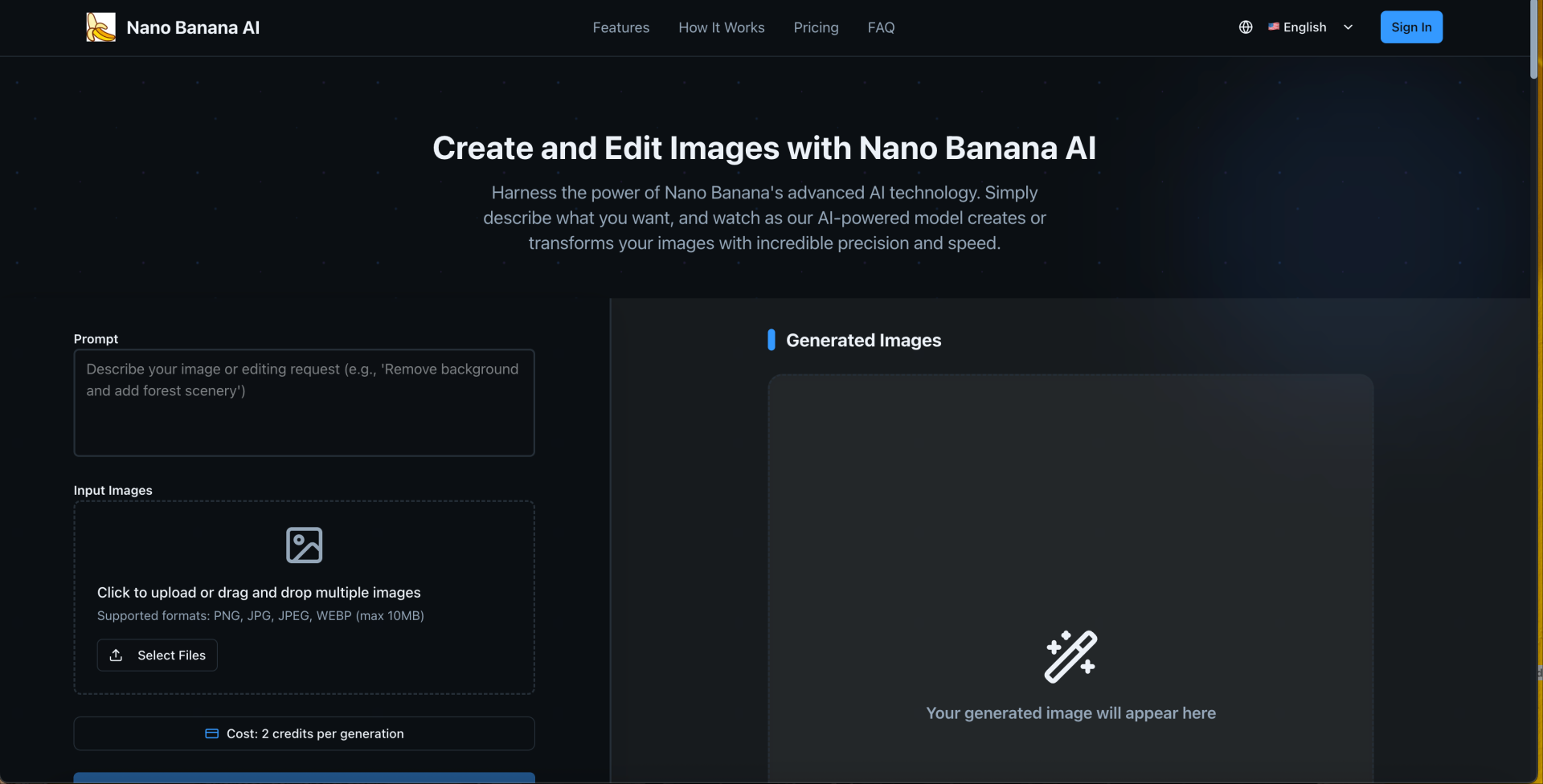 Harness the power of Nano Banana's advanced AI technology. Simply describe what you want, and watch as our AI-powered model creates or transforms your images with incredible precision and speed.
