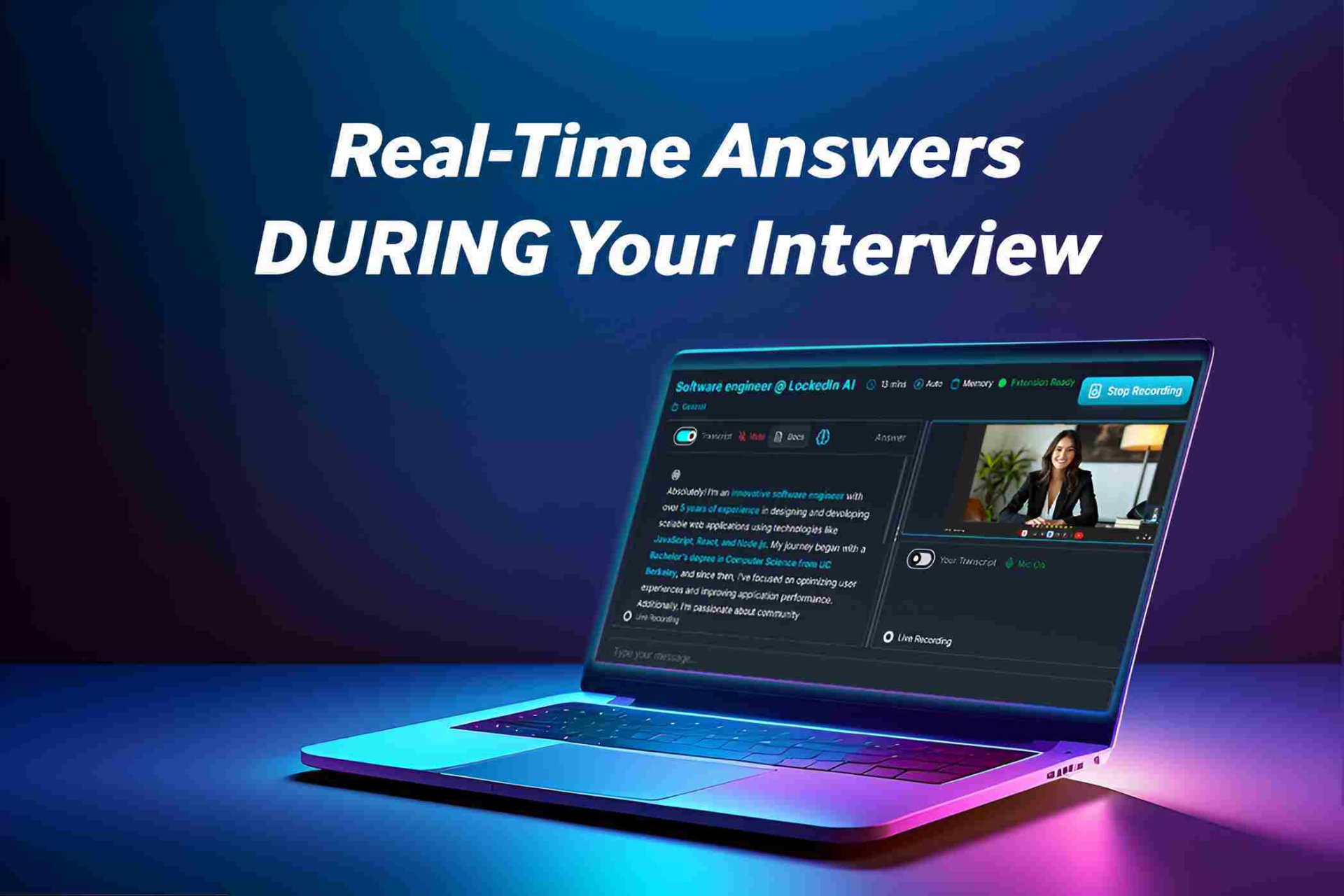 Auto-generates tailored and accurate real-time answers and feedbacks in online JOB INTERVIEW and PROFESSIONAL MEETING