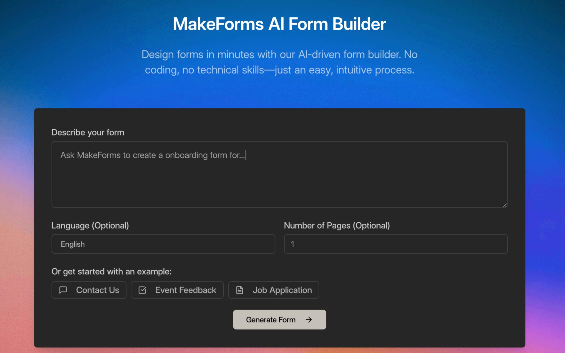 - Quickly build forms by simply describing what you need.