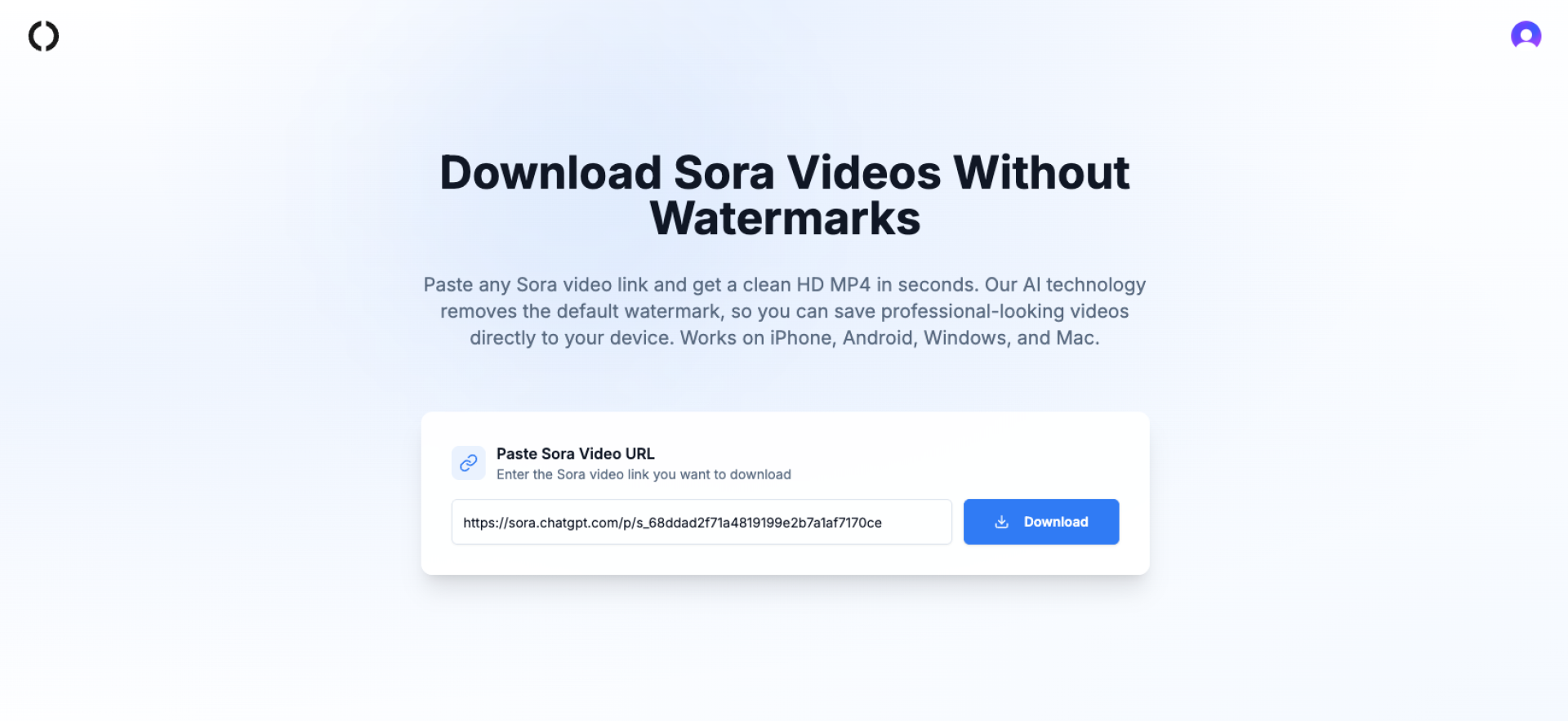 Sora Video Downloader is a free and powerful online tool that allows you to easily download videos from the Sora platform without any watermark. With a clean and intuitive interface, it lets you save your favorite Sora videos in high quality directly to your device—completely free of charge and without the need for registration or extra software. Simply paste the video link, and the downloader will quickly process it, giving you a smooth, fast, and secure download experience. Whether you want to watch videos offline, keep your favorite clips, or use content for educational and personal purposes, Sora Video Downloader makes it effortless. Enjoy unlimited downloads, high-resolution video quality, and a watermark-free experience anytime, anywhere.