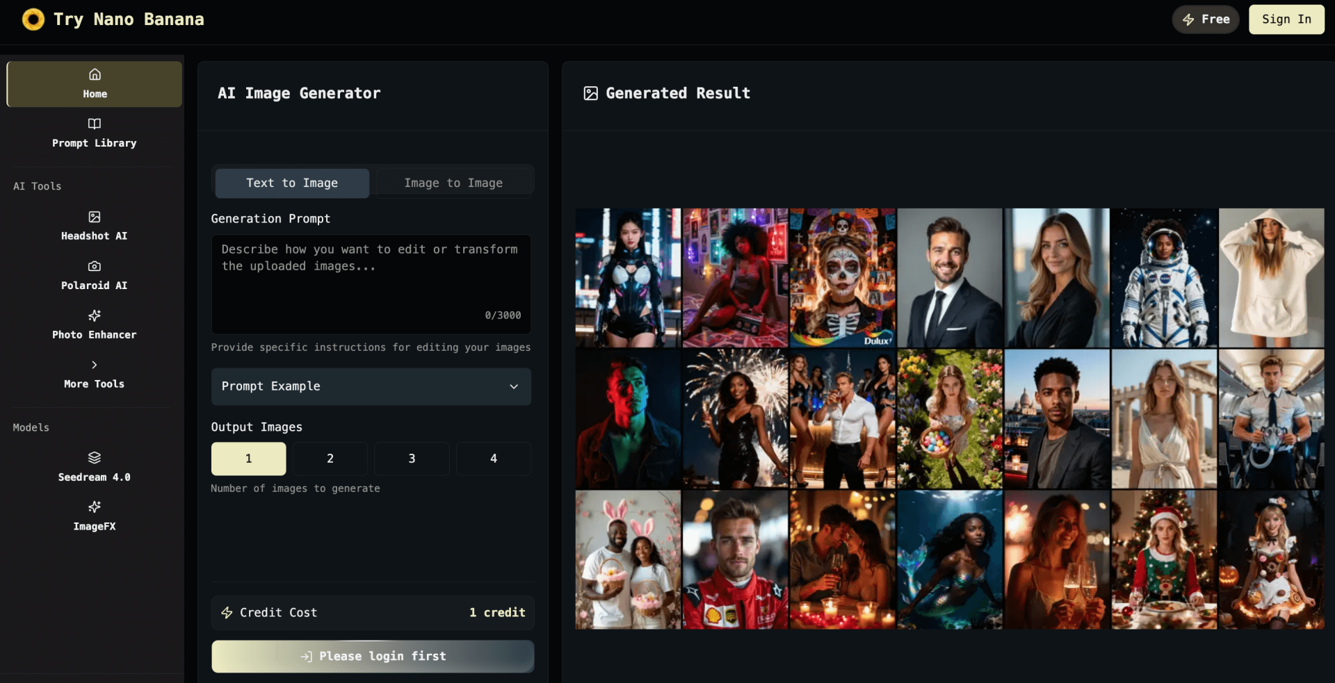 Try Nano Banana is a browser-based, prompt-first image generator. Enter a short text prompt to create a downloadable image in seconds, then continue in your existing editor, CMS, or ad platform.